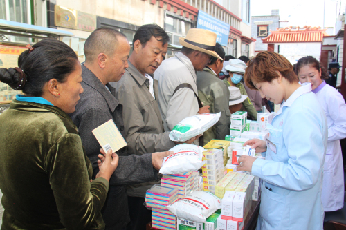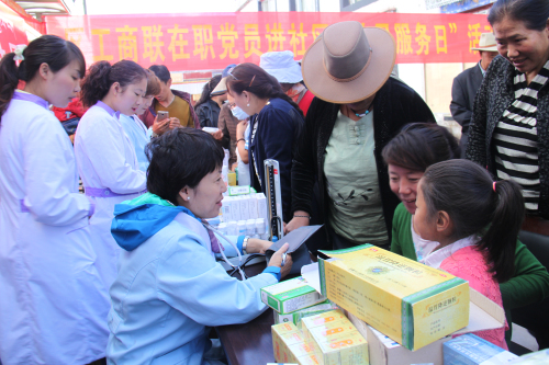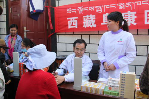 根據(jù)自治區(qū)工商聯(lián)《關于深化區(qū)直機關在職黨員到社區(qū)服務群眾活動》的統(tǒng)一安排:阜康醫(yī)藥有限公司四個黨支部,在張德才總院長的帶領下,一行8人在2015年8月8日上午到拉薩市城關區(qū)嘎瑪貢桑社區(qū)進行義診活動,帶著1.5萬余元藥品和便攜式B超,心電圖等。在半天時間內(nèi)貢義診380余人,為社區(qū)群眾進行了測量血壓、發(fā)放藥品、健康咨詢等,受到了社區(qū)群眾的熱烈歡迎。期間正在慰問群眾的自治區(qū)政協(xié)副主席阿沛晉源,和區(qū)統(tǒng)戰(zhàn)部副部長、區(qū)工商聯(lián)黨組副書記李瑞富等領導的高度評價。
