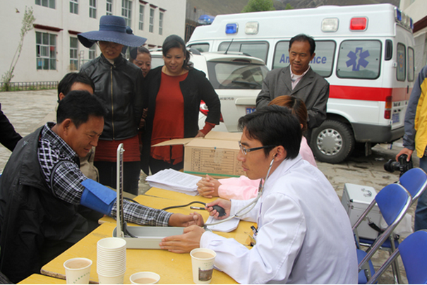 對于過為尼木縣鄉(xiāng)村小學(xué)老師們的體檢,董發(fā)善醫(yī)生說:“大部分老師都患有血管神經(jīng)性頭疼和不同程度的胃病和膽囊疾病。這是由于在鄉(xiāng)村學(xué)校中,老師們工作繁忙,經(jīng)常忘記吃飯或者到了吃飯的時(shí)候就湊合吃幾片風(fēng)干肉,喝幾杯酥油茶。這是造成鄉(xiāng)村老師腸胃和膽囊疾病的原因。此外,由于老師們經(jīng)常站著講課,腰椎疾病的患病率比其他行業(yè)的要高。”在體檢的同時(shí),醫(yī)護(hù)人員還向老師們發(fā)放了常見疾病預(yù)防知識的宣傳材料。