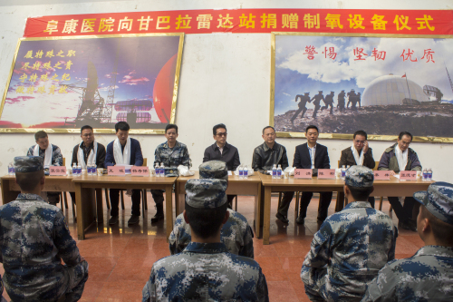 2016年5月11日上午,王斌董事長(zhǎng)在捐贈(zèng)儀式上講到:“阜康醫(yī)院自建院以來(lái),始終秉承‘用我們的知識(shí)和良知為人類健康服務(wù)’的辦院宗旨,堅(jiān)持發(fā)展不忘百姓、不忘社會(huì)。這次我們向甘巴拉雷達(dá)站的子弟兵們捐贈(zèng)這套制氧設(shè)備,希望能夠?yàn)榇蠹覄?chuàng)造更好的工作、生活環(huán)境,希望能為駐守祖國(guó)邊疆的子弟兵們貢獻(xiàn)一份力量,在此,我謹(jǐn)代表阜康集團(tuán)全體員工向駐守在甘巴拉雷達(dá)站的人民解放軍全體指戰(zhàn)員表示最真摯的敬意。”