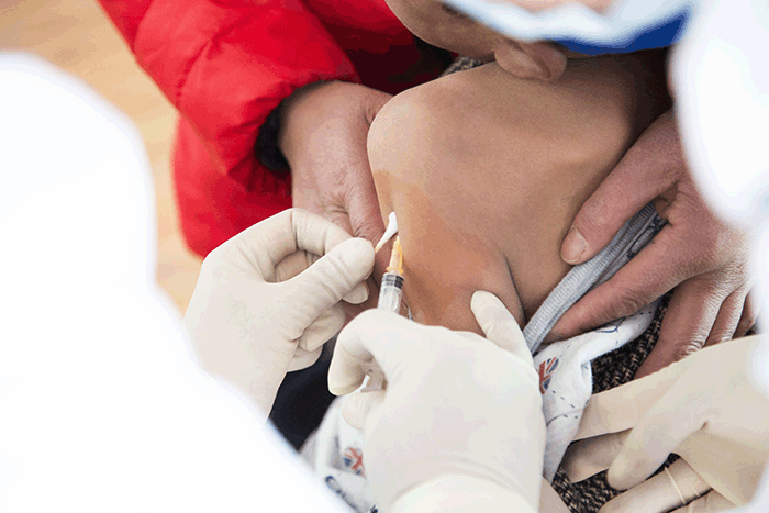 為更好地完成及促進(jìn)“西藏自治區(qū)社會福利機(jī)構(gòu)健康篩查暨病案采集活動”,同時進(jìn)一步保障好、落實好“西藏自治區(qū)推行國家醫(yī)養(yǎng)結(jié)合相關(guān)工作三年計劃”在西藏自治區(qū)全區(qū)范圍內(nèi)得以順利實施,2016年11月12日上午9時許,西藏自治區(qū)民政廳、自治區(qū)衛(wèi)計委疾控處、自治區(qū)在線醫(yī)養(yǎng)結(jié)合服務(wù)中心、拉薩市疾控中心、西藏自治區(qū)相關(guān)新聞媒體、西藏阜康醫(yī)療股份有限公司聯(lián)合拉薩市疾病預(yù)防控制中心共同組織起一支9人醫(yī)療小隊,前往西藏自治區(qū)兒童福利院開展“入托、入學(xué)兒童集中預(yù)防接種”工作,為自治區(qū)兒童福利院的孩子們免費(fèi)進(jìn)行體檢篩查和預(yù)防接種。