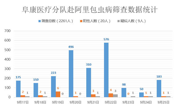 由于居民分散,9月24日阜康醫(yī)療隊驅(qū)車奔波一天,共篩查50人,發(fā)現(xiàn)1例陽性,1例疑似。9月25日,篩查183人,發(fā)現(xiàn)1例陽性,1例疑似!但是,每一次的檢查總有個別人拒絕抽血,我們的心情難以用語言表達(dá),不知道他們出于什么原因拒絕,我們心里還是擔(dān)憂他們的健康狀況,深深地感到健康衛(wèi)生知識教育仍需加強,包蟲病防治工作任重道遠(yuǎn),我們將砥礪前行!