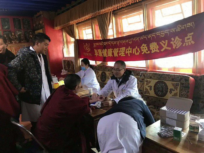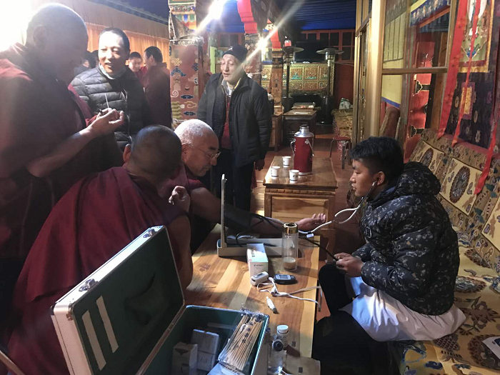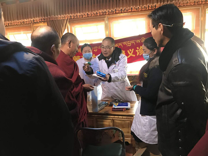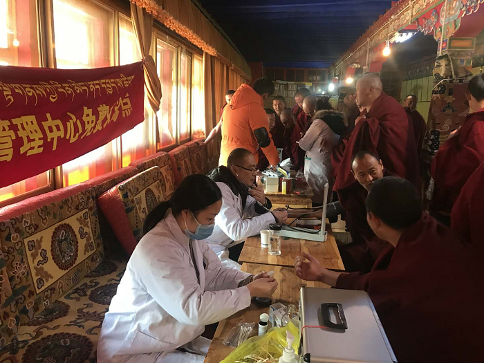 11月28日上午,西藏阜康醫(yī)院慢病管理中心義診分隊來到甘丹寺管理委員會。在文物資產(chǎn)處處長羅布次仁的接待下,我院5名醫(yī)務(wù)人員走進了甘丹寺,義診分隊此行帶著阜康人送醫(yī)送藥的暖心活動、帶著“用知識和良知為人類健康服務(wù)”的宗旨、帶著阜康醫(yī)院幾千元的藥品,為全寺430名僧侶免費測血壓、血糖、氧飽和度以及發(fā)放常見疾病的藥物。