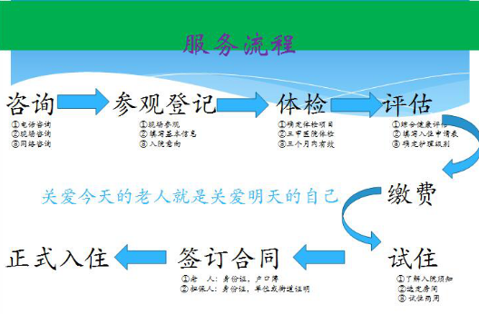室內(nèi)配套設(shè)施:套房內(nèi)彩電、空調(diào)、電話、獨立衛(wèi)生間、熱水一應(yīng)俱全。室內(nèi)外的老年活動中心配有健身廣場、閱覽室、棋牌室等。院內(nèi)設(shè)有食堂餐廳。服務(wù)宗旨:“老人至上,服務(wù)第一” !工作理念:“老人的要求,我們的追求” 。服務(wù)準(zhǔn)則:“服務(wù)質(zhì)量優(yōu)質(zhì)化、飲食搭配營養(yǎng)化、文化生活多樣化、健身活動經(jīng)?;?rdquo; 。