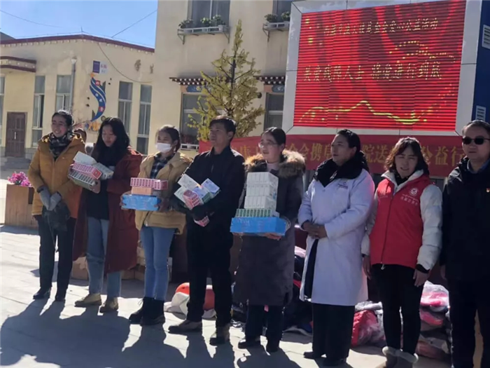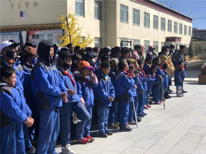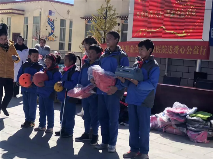 11月1日上午,西藏阜康天使基金會(huì)吉拉女士受西藏阜康醫(yī)療股份有限公司黨委書記、阜康天使基金會(huì)會(huì)長(zhǎng)王斌先生,西藏阜康醫(yī)療股份有限公司總經(jīng)理、阜康天使基金會(huì)秘書長(zhǎng)劉瀟瀟女士委托與西藏阜康醫(yī)院義診隊(duì)一起,攜價(jià)值一萬五千元的藥品和兩萬元的物資來到那曲市特殊教育學(xué)校,為這里的孩子們帶來了文化體育學(xué)習(xí)用品及藥品等物資。在特校校長(zhǎng)次仁拉姆的組織下,特校師生列隊(duì)歡迎我們的到來,還精心準(zhǔn)備了錦旗和潔白的哈達(dá)。