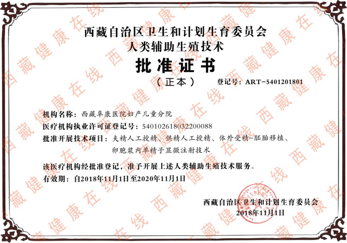 近日,西藏自治區(qū)衛(wèi)生和計(jì)劃生育委員會(huì)正式下發(fā)文件,確認(rèn)由西藏阜康醫(yī)院婦產(chǎn)兒童分院生殖醫(yī)學(xué)中心開展的常規(guī)體外受精-胚胎移植(IVF-ET)技術(shù)、卵胞漿內(nèi)單精子顯微注射(ICSI)技術(shù)、夫精人工授精(AIH)及供精人工授精(AID)技術(shù),四項(xiàng)人類輔助生殖技術(shù)校驗(yàn)合格,同意該中心作為西藏目前開展人類輔助生殖技術(shù)中心繼續(xù)開展相關(guān)技術(shù)的單位。