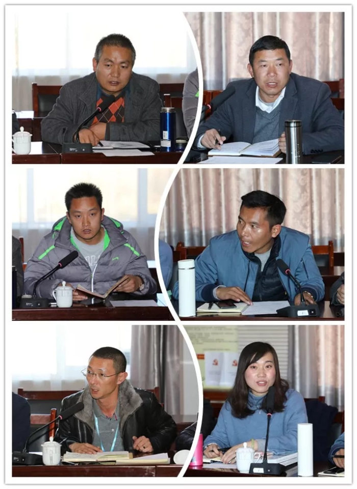 各負(fù)責(zé)人會(huì)上作說明·多杰太(左一) 、田鵬(右一)、羅布次仁(左二)、許鵬杰(右二)、李紀(jì)偉(左三)、李麗(右三)