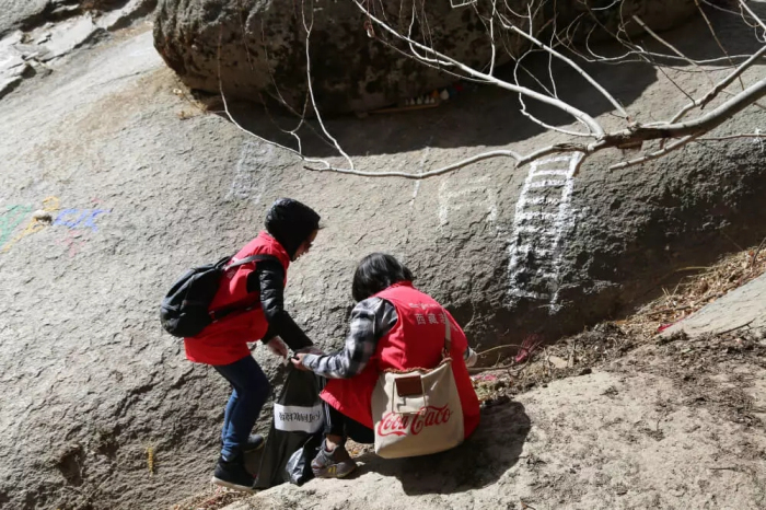 這時(shí)基金會(huì)的工作人員及時(shí)給大家發(fā)放了手套和垃圾袋。上山途中,同事們一邊享受著爬山帶來(lái)的樂(lè)趣,一邊把沿途的垃圾撿起放在事先準(zhǔn)備好的垃圾袋中,并將可回收垃圾和不可回收垃圾進(jìn)行分開(kāi)收集。因?yàn)樯铰菲閸纾敬位顒?dòng)還準(zhǔn)備了急救箱,以防在爬山過(guò)程中出現(xiàn)身體不適等意外情況。