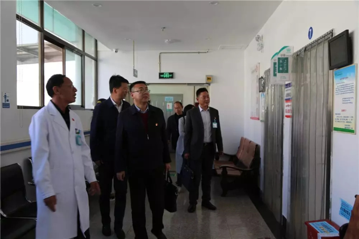 宋留柱書記一行在王斌等各位院領(lǐng)導(dǎo)的陪同下參觀了阜康醫(yī)院放射科、門急診科、標(biāo)準(zhǔn)化病房、院史館、黨員活動(dòng)室等。