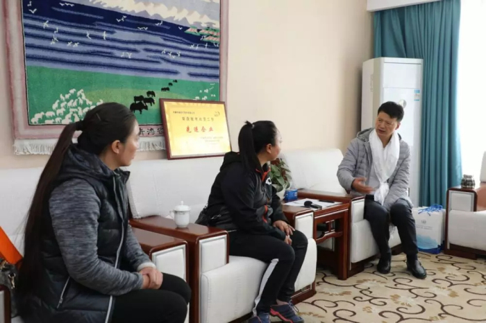 2019年5月14日上午,嘉黎縣扶貧辦主任、脫貧攻堅(jiān)指揮部辦公室副主任才旦卓嘎和嘉黎縣脫貧攻堅(jiān)指揮部轉(zhuǎn)移就業(yè)組負(fù)責(zé)人(副組長(zhǎng))卓央開車經(jīng)過七個(gè)多小時(shí)的長(zhǎng)途跋涉來到我院,只為親自獻(xiàn)上潔白的哈達(dá),送來所有鄉(xiāng)親們的問候和祝福,向阜康和王斌董事長(zhǎng)表達(dá)深深的感激之情!
