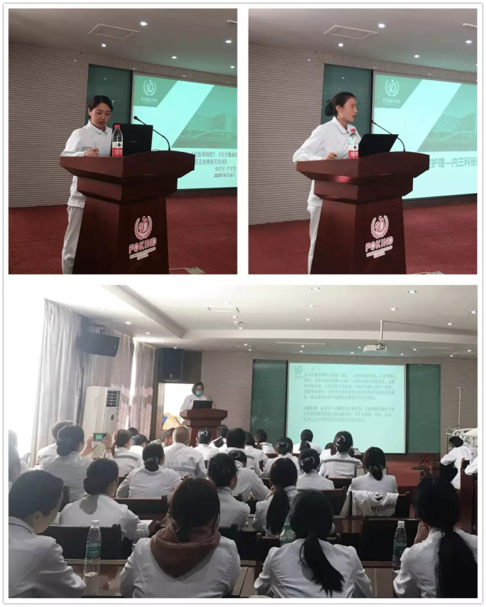 6月19日下午,在院長助理、護理部主任李麗的指導下,我部組織了阜康醫(yī)院共62名護理人員在阜康婦產(chǎn)兒童醫(yī)院四樓會議室開展了以“口腔護理”、“血糖監(jiān)測”、“查對制度、交接班制度、安全輸血制度、護理糾紛防范及處理”的相關(guān)培訓。內(nèi)三科護士長張穎結(jié)合科室遇到的口腔護理操作,針對口腔護理用物準備、口腔護理的適應癥、常用溶液的作用、口腔護理的操作流程等方面進行了講解;外二科護士長陳群就血糖監(jiān)測結(jié)合臨床經(jīng)驗針對血糖監(jiān)測的目的,操作流程及對糖尿病患者的健康宣教進行講解;治療室護士長尹文雋在講解制度中再三強調(diào)我們護理操作中要時刻銘記“患者需求至上”的核心價值觀,做到患者安全、護理安全,全心全力為患者服務(wù)。