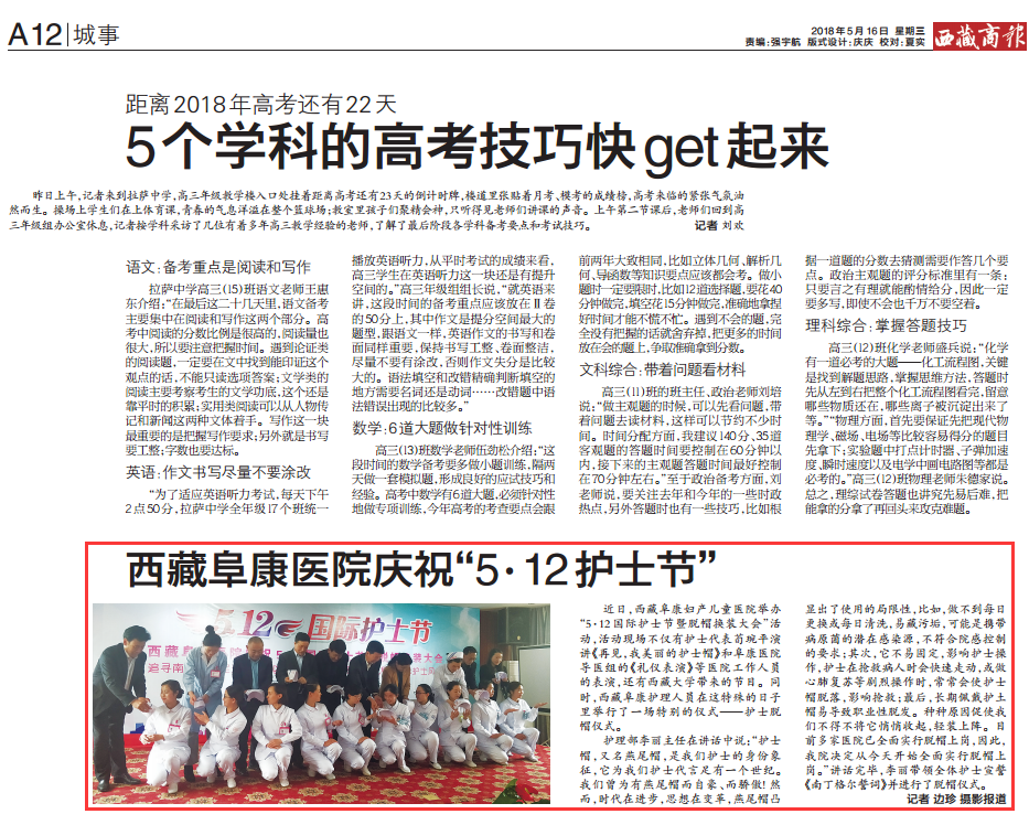 近日,西藏阜康婦產(chǎn)兒童醫(yī)院舉辦“5·12國際護(hù)士節(jié)暨脫帽換裝大會”活動,活動現(xiàn)場不僅有護(hù)士代表荀琬平演講《再見,我美麗的護(hù)士帽》和阜康醫(yī)院導(dǎo)醫(yī)組的《禮儀表演》等醫(yī)院工作人員的表演,還有西藏大學(xué)帶來的節(jié)目。同時(shí),西藏阜康護(hù)理人員在這特殊的日子里舉行了一場特別的儀式——護(hù)士脫帽儀式。