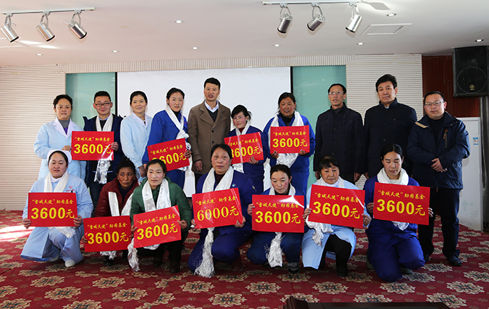 王董事長表示,今天到此的都是阜康最基層、最一線的人員,是她們默默無聞工作,創(chuàng)造了優(yōu)美、整潔的就醫(yī)環(huán)境,使來阜康的每一個人,對阜康有一個干凈整潔的第一感受。所以,我要感謝他們,感謝她們的辛勤勞動換來了阜康的美好環(huán)境。說實話,之前我曾多次考慮過為了阜康的發(fā)展,是不是將阜康的保潔工作外包給更專業(yè)的人員,用更專業(yè)、更省錢的方式來管理。但是,想到她們這群可愛的藏族姑娘,我又一次次的放棄了這個念頭。因為她們也是我們阜康這個大家庭的一員。我們爭取努力,在2020年,讓她們和我們阜康的每一個人一起奔小康,借用習大大的一句話“一個都不能少”。最后,在新年來臨之際,祝愿阜康的每一位員工都不再需要阜康“雪域天使基金會”的幫助!