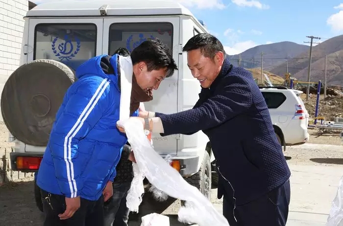 ●公司黨委副書記、副總經(jīng)理陳彬為嘉黎縣夏瑪鄉(xiāng)一村村民獻(xiàn)上哈達(dá)