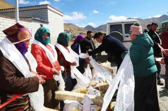 2018年2月13日,在藏歷新年即將來臨之際,為了讓大家過上一個歡樂、祥和的新年,受公司黨委書記王斌同志委托,公司黨委副書記、副總經(jīng)理陳彬、阜康醫(yī)院院長嘎布、公司副總經(jīng)理王鐵君,隨同人員王娟、雷羊州、劉生海一行六人帶著董事長的囑托和飽含滿滿愛意的慰問品前往那曲嘉黎縣夏瑪鄉(xiāng)一村為22戶村民送去新年祝福。