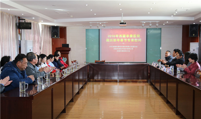 在藏歷新年和新春佳節(jié)來臨之際,2018年2月15日、16日,受公司黨委書記王斌同志委托,由公司黨委副書記、副總經(jīng)理陳彬同志,西藏阜康醫(yī)院院長阿旺建才、西藏阜康醫(yī)院院長歐珠羅布帶隊的雙節(jié)慰問小組集中慰問春節(jié)期間堅守在一線的專家、醫(yī)務工作人員、行政后勤員工及不能出院與家人團聚的患者。為他們送來了董事長的關(guān)心和問候,帶來了新年的美好祝愿和飽含暖暖情誼的慰問禮物。