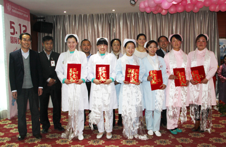 下午是“5.12國際護士節(jié)”慶祝活動,同去年一樣例行勤儉節(jié)約只是搞了一個簡單地茶話會,但是滿桌的水果,粉紅色的節(jié)日慰問語,美麗的鮮花都是院領(lǐng)導(dǎo)對護士姐妹們最由衷的節(jié)日慰問。本次慶?;顒觿t瀟總經(jīng)理、陳彬總經(jīng)理、張德才院長、敖德秀副院長、劉連福副院長、李君副院長、張治副院長應(yīng)邀出席,他們紛紛致辭感謝全院護士這一年的辛苦工作,并對她們寄予厚望,希望白衣天使們,銘記“患者需求至上、團隊精誠協(xié)作”的院訓(xùn),緊跟時代步伐,克服護理工作量大、人員緊張等諸多困難,齊心協(xié)力,努力工作,再創(chuàng)佳績。