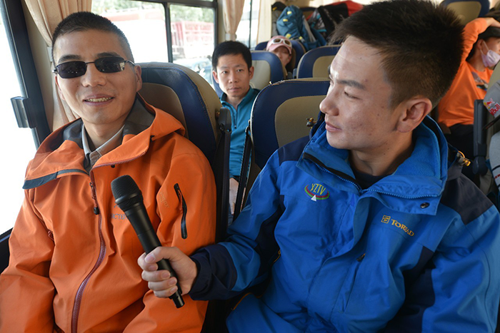 對于專業(yè)技術(shù)裝備的使用,張洪的接受能力也更強(qiáng),很快就能完全獨立并且熟練操作這些裝備。張洪說:“我主要的問題就是看不到,不知道前邊的方向和哪條路線是安全的。但是這些問題都不是問題,攀登的時候會有一條安全繩,看不到但是卻能摸得到,沿著這條繩子往上都是安全的,我只要沿著它一步一步往上攀登,就能登上山頂。話聽著很簡單,但還是很難想象如此陡峭的山峰,如此厚重的積雪,一個盲人要克服多少困難才能登頂。”