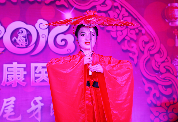 隨后阜康醫(yī)藥年終尾牙晚會正式開始,優(yōu)雅古典的《禮之舞》、幽默詼諧的《碰瓷》、歡快的《青春踢踏》、令人警醒的《手機綜合癥》、活潑性感的《百老匯》伴隨著激動的百元紅包、希諾水杯、微波爐、ipad抽獎活動一次次把晚會推向高潮。