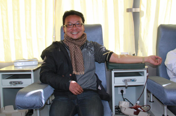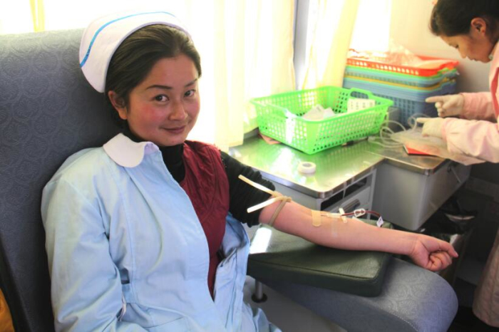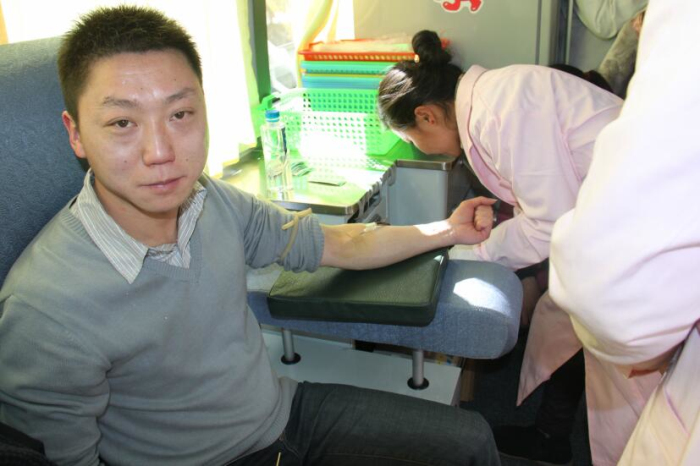 近日拉薩市血庫全線告急,血庫面臨血荒的危機。在得知這一緊急情況后王斌懂事長、劉瀟瀟總經(jīng)理立即組織阜康員工積極獻血,在阜康各位領(lǐng)導(dǎo)的帶領(lǐng)下,2013年1月30日他們來到阜康婦產(chǎn)兒童醫(yī)院血液中心采血點義務(wù)獻血。采血現(xiàn)場筆者看到在阜康婦產(chǎn)兒童醫(yī)院呂果梅副院長和拉薩大藥房何文秀店長的組織下大家排著整齊長隊等待獻血。筆者有幸采訪到了阜康醫(yī)院心腦血管分院內(nèi)科主任于永軍,據(jù)于主任介紹他已是多次參與獻血,阜康的員工都是很無私的,很多時候在面臨病人急需輸血而血站又缺血的情況下阜康員工就會自發(fā)組織在一起去血站為病人獻血,這種情況總是經(jīng)常出現(xiàn)。于主任告訴筆者自己獻血也是想起到一個帶頭的作用,很多人不愿獻血就是怕對身體有傷害,醫(yī)生護士積極獻血能告訴大家適當(dāng)獻血不但對身體沒有害處還有利于身體健康。