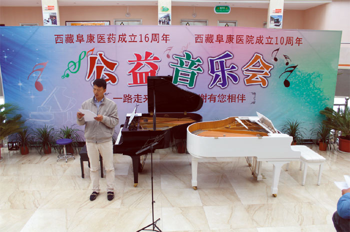 為了慶祝阜康醫(yī)藥發(fā)展有限公司成立十六周年,阜康醫(yī)院成立十周年,2015年6月21日至23日,西藏阜康集團(tuán)公益音樂會在西藏阜康(國際)健康體檢中心、和香格里拉大酒店成功舉辦,本次音樂會邀請到了國外友人廣瀨清隆先生及邊天、董樂晨、周于蒨四位音樂家來到西藏為大家公益演出,參加音樂會的還有著名網(wǎng)絡(luò)歌手邊巴德吉,本次音樂會受到了社會各界人士的一致好評。