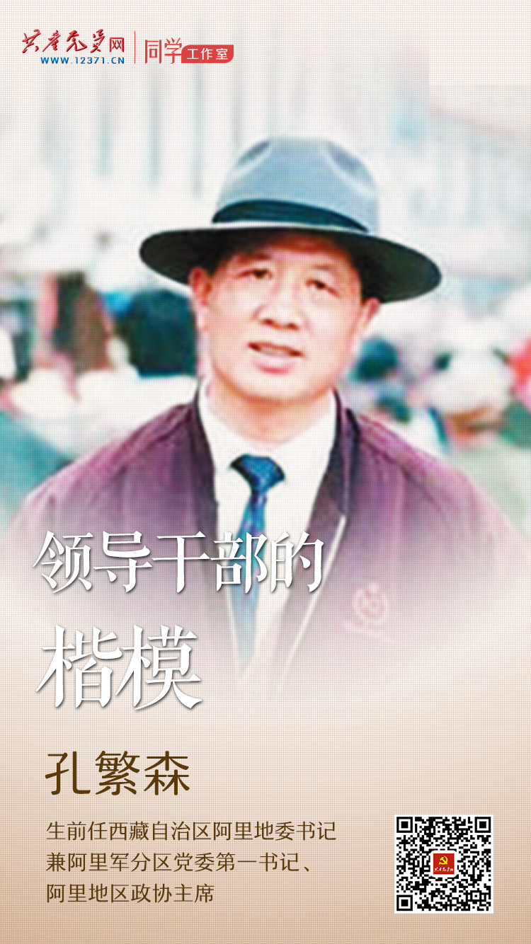孔繁森(1944—1994),山東聊城人。1966年9月加入中國共產(chǎn)黨。1961年8月參軍,歷任濟南軍區(qū)總醫(yī)院警通排戰(zhàn)士、共青團聊城地委常委、聊城地委宣傳部副部長。1979年作為援藏干部赴日喀則地區(qū)任地委宣傳部副部長,后改任崗巴縣委副書記兼縣檢察院檢察長。1988年第二次進藏,先后任拉薩市副市長,阿里地委書記兼阿里軍分區(qū)黨委第一書記、阿里地區(qū)政協(xié)主席。他跑遍了全地區(qū)106個鄉(xiāng)中的98個,行程8萬多公里,與藏族群眾結(jié)下了深厚友誼。1994年11月29日,在新疆考察邊貿(mào)工作途中因車禍不幸殉職。榮獲“全國民族團結(jié)進步模范”稱號,被追授“模范共產(chǎn)黨員、優(yōu)秀領(lǐng)導(dǎo)干部”稱號。