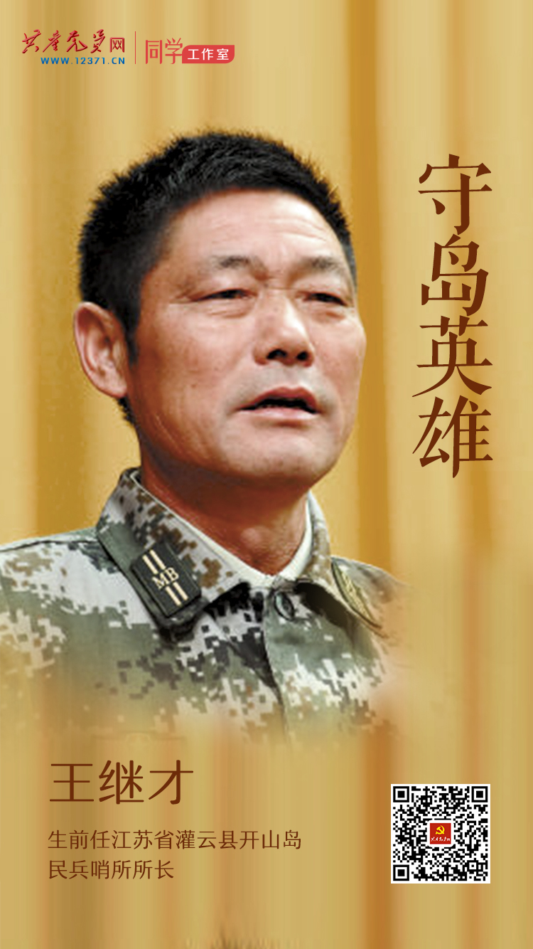 王繼才(1960—2018),江蘇灌云人。2003年10月加入中國共產(chǎn)黨。江蘇省灌云縣開山島民兵哨所原所長、開山島村黨支部原書記。自1986年起,毅然擔(dān)起守衛(wèi)黃海前哨開山島的重任。他和妻子以海島為家、與艱苦為伴,堅(jiān)持每天升起國旗,每天按時(shí)巡島,護(hù)航標(biāo)、寫日志,與走私、偷渡等不法分子作斗爭。2018年7月27日,在執(zhí)勤期間突發(fā)疾病,經(jīng)搶救無效不幸去世。王繼才夫婦被評為全國“時(shí)代楷模”,王繼才后被追授為“全國優(yōu)秀共產(chǎn)黨員”。